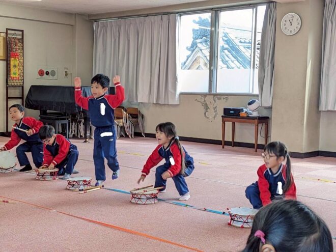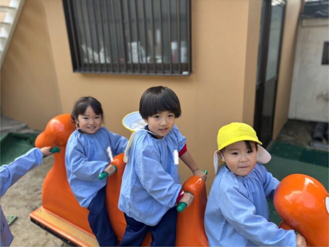 発表会の練習が終わると、思いっきり外遊びを楽しんでいるひよこさんです。