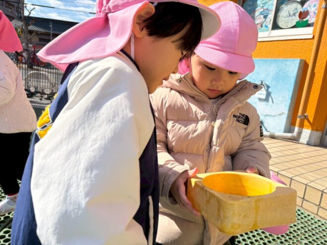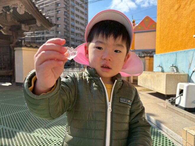 「つめたーい!」と氷の感触を楽しんでいましたよ。