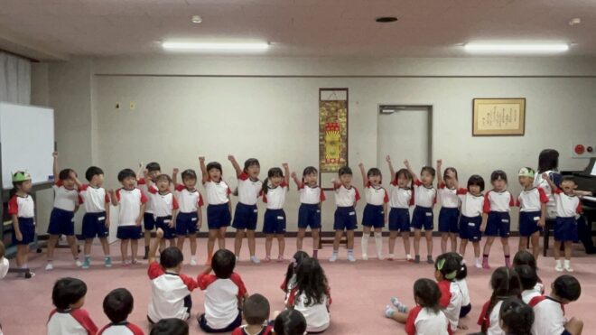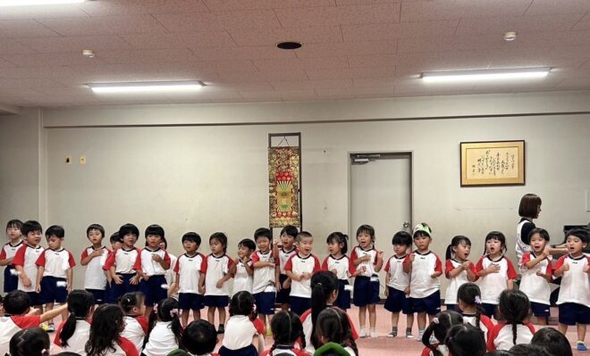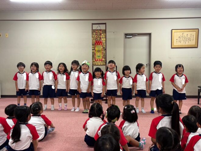 園長先生からは、「怪我などに気をつけて、楽しい夏休みを過ごしてください」とお話があり、真剣に耳を傾けていた子ども達でした。