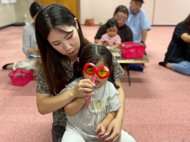 自己紹介をしたり、プラ板作りをしたり、ビンゴゲームをしたり、久しぶりに玩具で遊んだり、楽しい時間を過ごしました。
