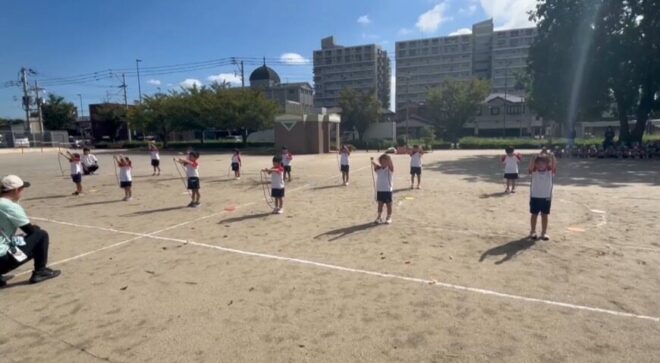 今週からお母さんたちが見学に来られるようになりましたが、ニコニコ元気で練習に参加していましたよ。