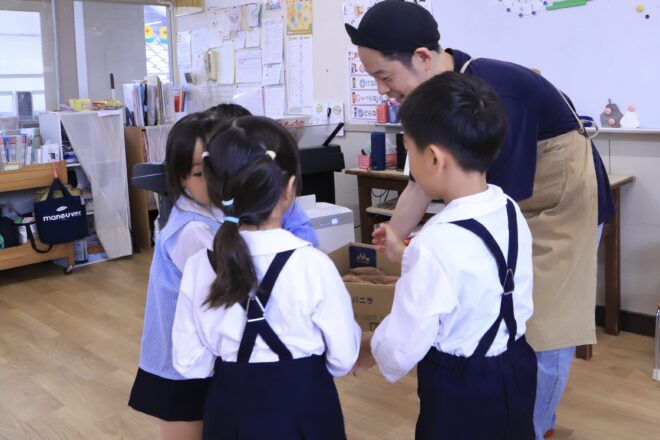 みんなが掘ったおいもをENDEの店主さんが受け取りに来られました。