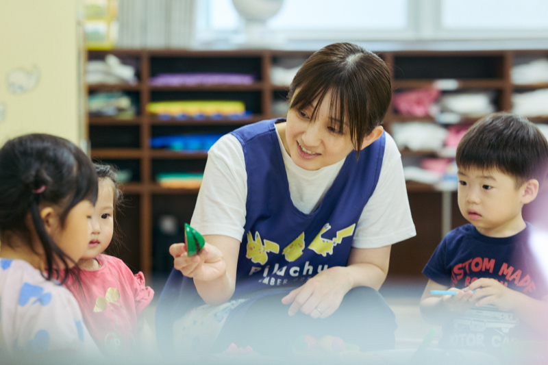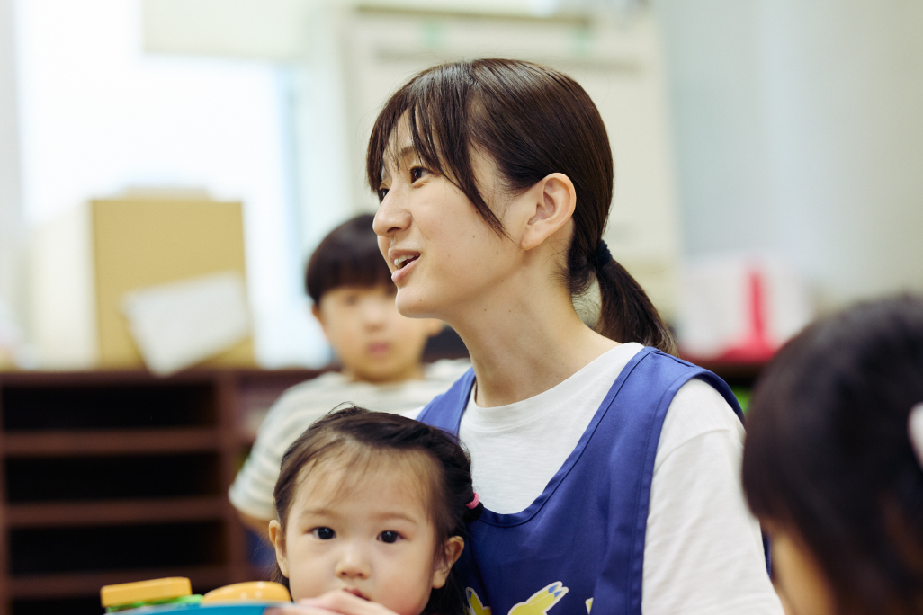 初めての集団生活を経験する未就学児たちが安心して過ごせるようにサポートするたかもく先生。