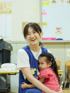 また、一緒に働く職員にとっても多くの刺激と学びを与えてくれます。そのため、子どもたちからはもちろん、職員からの信頼も厚く、頼れる存在です。日々の小さな変化にも敏感に気づき、心身の発達や感情面のサポートにもきめ細やかな配慮を欠かしません。
